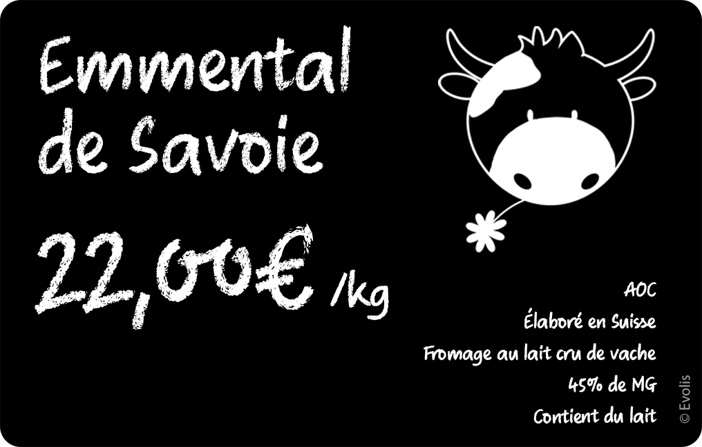 と エディキオの価格タグ、 店頭で直接印刷する価格ラベルで、棚に付加価値をつけましょう。PVCカードに印刷された当社の価格ラベルは、肉屋、デリカテッセン、ベーカリーなど、あらゆるタイプの店舗ウィンドウや小売店に最適です。また、価格、重量、原産地、バーコード、調理アドバイス、スケールコードなど、お客様に役立つ情報をすべて前面に、または裏面に記載することができます。