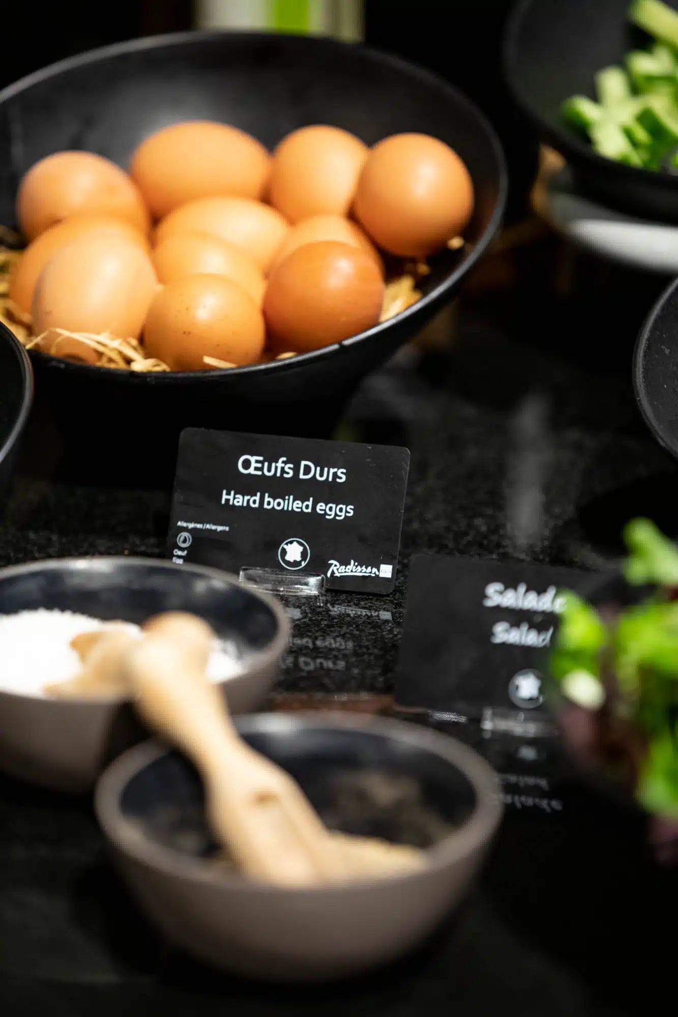 Edikio Guestを使えば、ビュッフェ用のラベルや案内カードを統一してホテルのブランドイメージを高められます。ラベルは完全にカスタマイズ可能で、料理名や製品名、翻訳、アレルゲン情報などの内容から、カードの素材、色、サイズまで自由に設定できます。各商品にふさわしい表示ができ、情報伝達に優れたプロフェッショナルな印象を与えます。