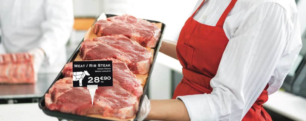 プライスカードにはさまざまな種類があるが、多くのスーパーマーケットでは、商品名と価格だけを表示するシンプルなモデルにこだわっている。これは、あらゆるタイプの小売環境で有効であり、特に価格に敏感な買い物客を引きつけるのに効果的な、試行錯誤を重ねた方法である。