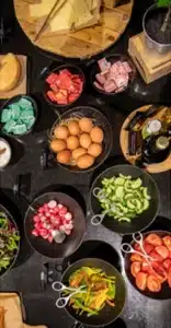 重要なのは 各製品カテゴリーには独自のスペースがある.こうすることで、お客様が新鮮な商品と熱い商品を混ぜてしまったり、冷たいお肉に蜂蜜がかかったりするのを防ぐことができます。理想的なのは、温かい商品、新鮮な商品、乾いた商品やサイドディッシュのエリアを明確に分けることです。また、食器の高さを変えることで、ビュッフェを正しく見せることができます。しかし、あまりに多くの商品が “重なって “置かれていると、お客さまが上の商品や高い位置にある商品を手に取るために、下の商品に触れてしまう危険性があることをお忘れなく。全ては手の届くところに置かなければなりません!
