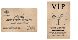 Edikio GuestとEdikio Price Tagを使えば、お客様のニーズや用途に応じて、PVCに代わるこの2つのラベルやカードで、パーソナライズされたプロフェッショナルなラベルやカードを作成することができます。