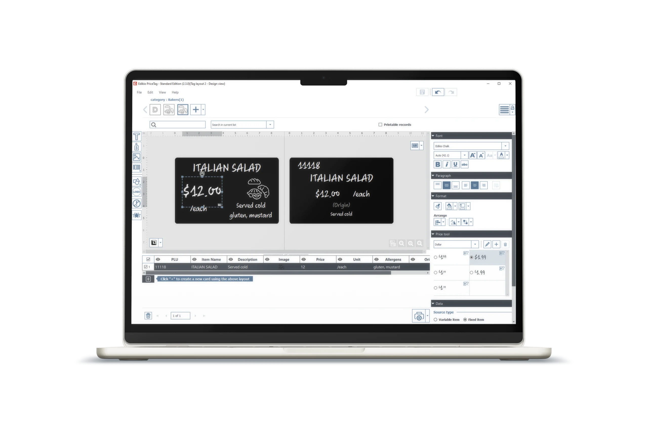 Edikio Duplex Price Tagは、両面印刷対応のPVCカードに価格ラベルを作成・印刷するオールインワンの高度なソリューションです。