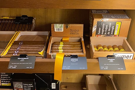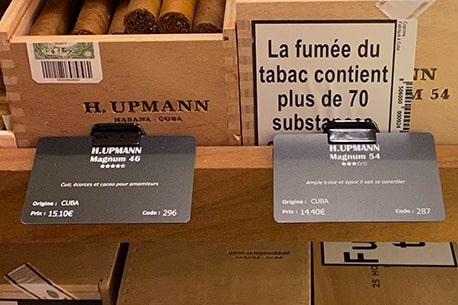「Le Cigare et la Plume」店のシガーセラーに適した価格タグ